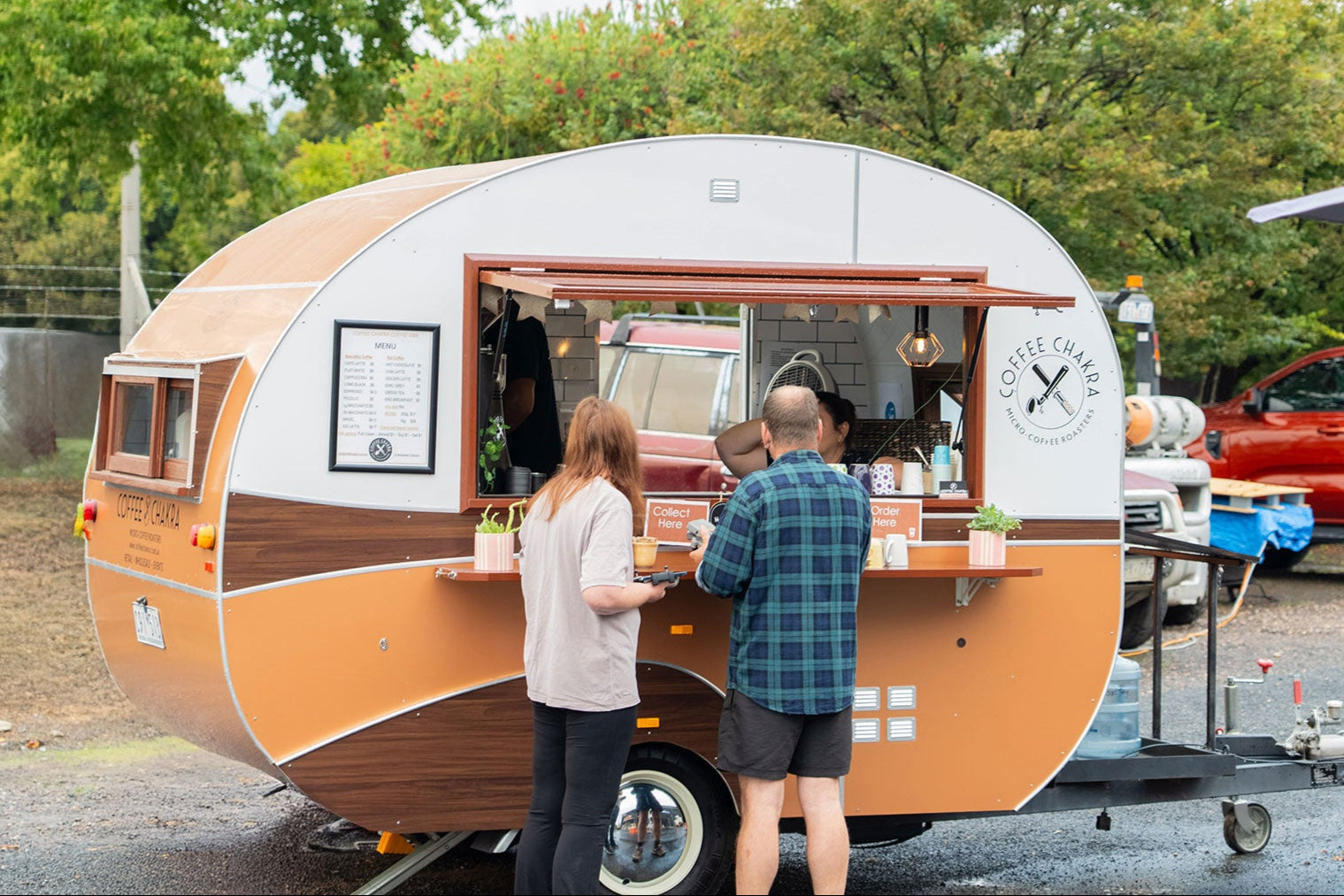 Each cup is freshly made by a barista using our signature blends or chai, served with the friendly care and spirited passion that go into every roast. It’s boutique café quality, just on four wheels.